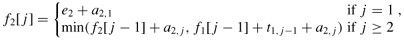 the fastest way through station S2,j-1 and then directly through station S2,j, or