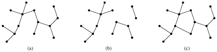 As defined in Section B.4, a free tree is a connected, acyclic, undirected graph. We often omit the adjective "free" when we say that a graph is a tree. If an undirected graph is acyclic but possibly disconnected, it is a forest. Many algorithms that work for trees also work for forests. Figure B.4(a) shows a free tree, and Figure B.4(b) shows a forest. The forest in Figure B.4(b) is not a tree because it is not connected. The graph in Figure B.4(c) is neither a tree nor a forest, because it contains a cycle.